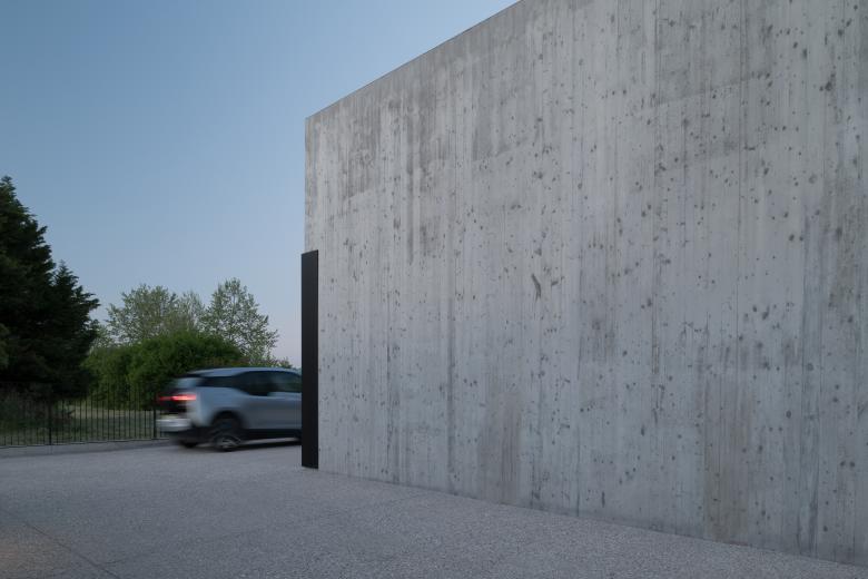 L’intervento si articola in due volumi in calcestruzzo a vista di differente altezza, disposti in modo da generare spazi fluidi, ariosi e intimi allo stesso tempo. Il volume più alto accoglie l’accesso principale, un ampio patio coperto e la zona giorno, concepita come un open space luminoso, che si apre sul giardino grazie a una grande parete vetrata. Il secondo volume, più basso, ospita la zona notte, raccolta e silenziosa, distribuita lungo un corridoio scandito da armadiature nascoste a tutta altezza.