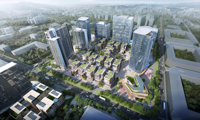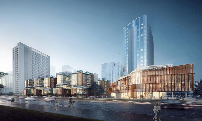 The 346,335sqm project is a mixture of headquarter office buildings, flexible office space, serviced apartments, and small incubator office pavilions.
