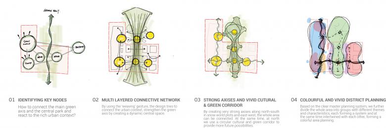 An urban green axis runs through the site, from north to south, taking advantage of the prime waterfront setting. Three clusters shape the master plan – an entertainment cluster along the west boundary, forming the main urban interface; a culture and civic cluster integrates with the central green space; and a lifestyle/retail cluster runs east to west, connecting the adjacent communities.