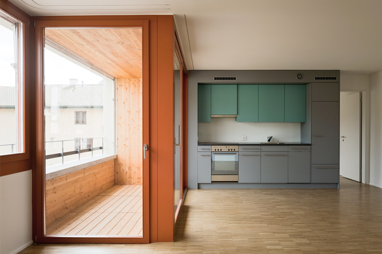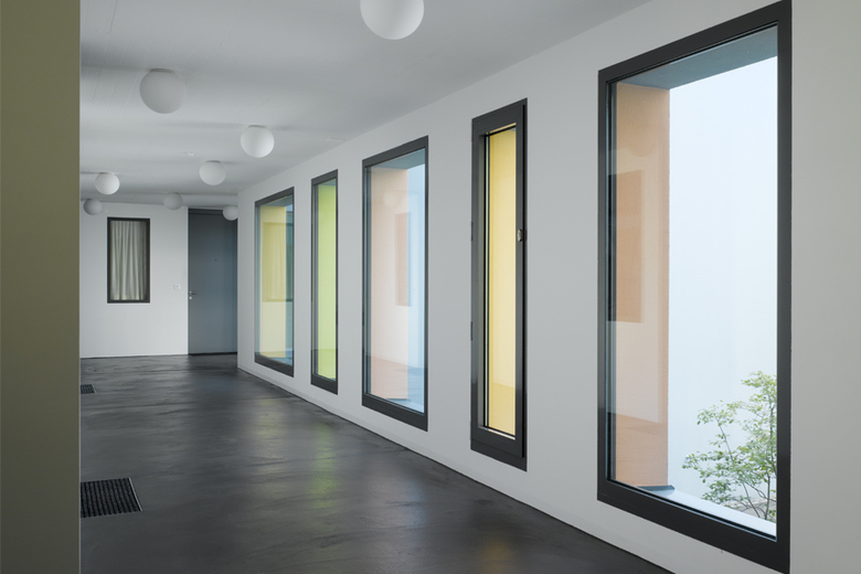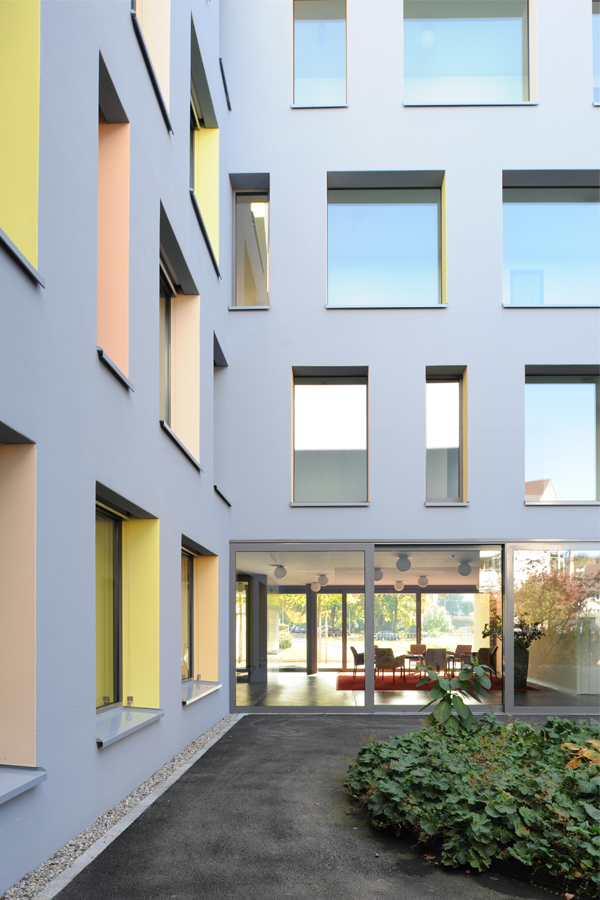 Die 26 alters- und behindertengerechten Wohnungen und die Gemeinschaftspraxis werden in einem kompakten Volumen mit Lichthof untergebracht. Den unterschiedlichen Aussenräumen und Gemeinschaftszonen und deren Charakter wird grosse Beachtung geschenkt. Der Aspekt der Privatheit und Öffentlichkeit ist ein zentrales Thema des Entwurfs. Orte für die Gemeinschaft sollen den kommunikativen Bedürfnissen der älteren Menschen Rechnung tragen. Im Gegensatz dazu sind Orte des Rückzugs in der umgebenden Gartenlandschaft und besonders in Form der eingezogenen Wohnungs-Loggien für jeden Bewohner vorhanden. Die Grundrisskonstellation ist auf selbstbestimmtes Wohnen ausgerichtet, kann aber mit einem minimalen Aufwand zu einer Pflegesituation generiert werden.