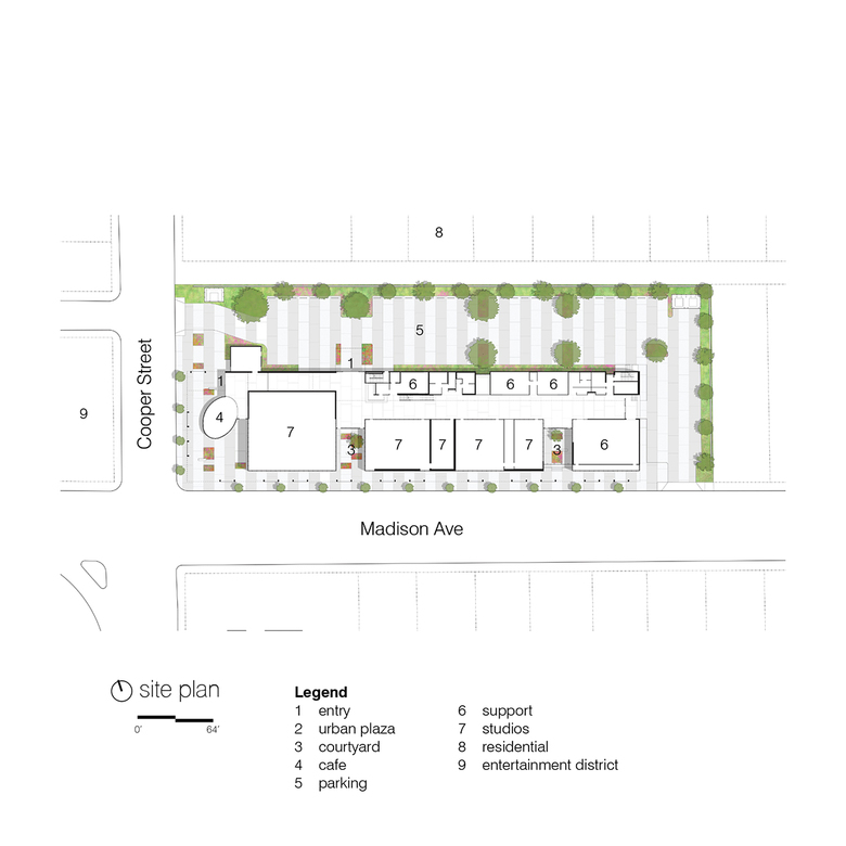 Dance and architecture share a focus on movement, space and time. Celebrating these disciplines, through this civic project, enhances its growing entertainment district and the adjacent residential neighborhoods.