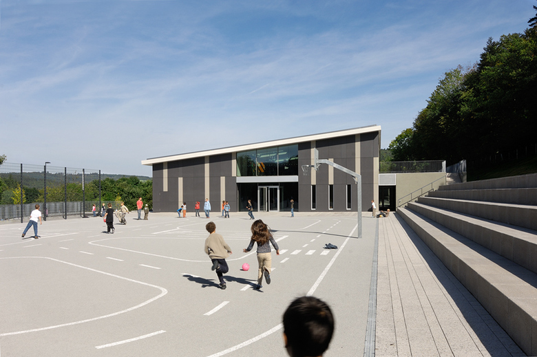 Neubau 2-zügige Grundschule mit Hortbetreuung, Sanierung der Sporthalle und Neugestaltung der Aussenanlagen.