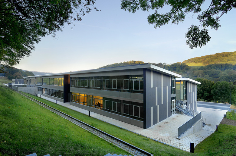 Die Natur, gemäß Kant, das Grenzenlose, Offene. Die Kultur, das Geistige, das Gestaltete, Gewollte, Geformte, Definierte. Die Schule als Vermittler mittendrin. Die Schule kommt klar strukturiert daher. Die Schüler sollen sich gut und unmittelbar orientieren: Die Klassen orientieren sich nach Westen mit Blick auf Tal und Taunushänge. Die Verwaltung und Fachklassen öffnen sich zum Hang hin nach osten. Treppen und grüne Innenhöfe verbinden beide Bereiche. Über der Eingangshalle befindet sich die Bibiliotheksgalerie. Zwischen den versetzten Fluren befinden sich eingestellte mit Rankpflanzen besetzte Nebenräume.