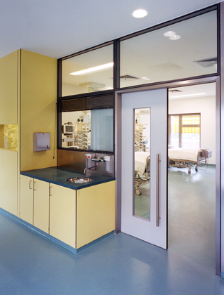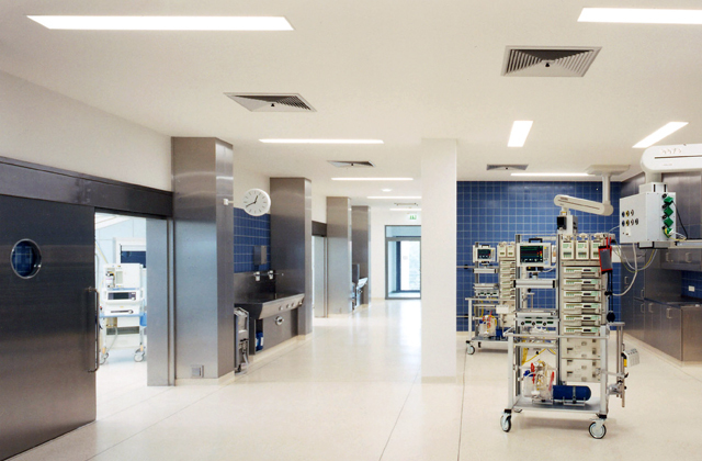 Das bestehende Klinikgebäude wurde grundlegend saniert und zum Zentrum für Herzkreislauf-, Diabetes- und Stoffwechselerkrankungen ausgebaut. Eine 3-geschossige Erweiterung nimmt die hochtechnisierten Funktionsbereiche auf. Während im Untergeschoss die Ver- und Entsorgungsbereiche angesiedelt sind, befinden sich im Erdgeschoss die Eingangshalle mit Cafeteria, die Abteilungen für Physikalische Therapie, Laboratoriumsmedizin und Notfallversorgung. Das erste Obergeschoss dient der Kardiologischen Diagnostik und Therapie sowie der dazugehörenden Pflege, das zweite Obergeschoss ist der Kardiochirurgie zugeordnet. Hier sind Operationsräume, Intensivmedizin und Sterilgutversorgung ebenengleich angesiedelt. Den 4 Operationsräumen ist eine zentrale Holding Area vorgelagert. In den Patientenzimmern wurden die Bettplätze vis-a-vis angeordnet, so dass verschiedene Bettstellungen ermöglicht werden.