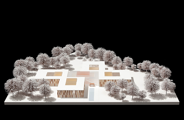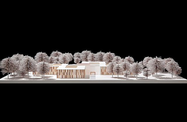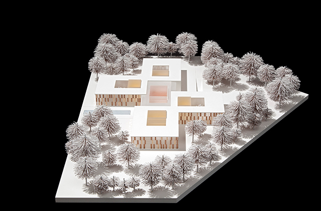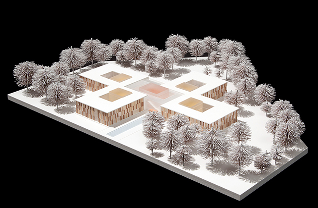 Die städtebauliche Figur wird durch eine windmühlenartige Anordnung der Stationen um einen zentralen Kern gebildet. Die einzelnen Stationen verzahnen sich mit dem Freiraum der umgebenden Parkanlage. Es entsteht eine kompakte Form, die zum einen den wirtschaftlichen Betrieb der Anlage ermöglicht und zum anderen die Parkanlage integriert und schont. Der zentrale Eingang ist auf die Hauptachse der Gesamtanlage ausgerichtet und wird durch eine begleitende „Wasserachse“ akzentuiert.