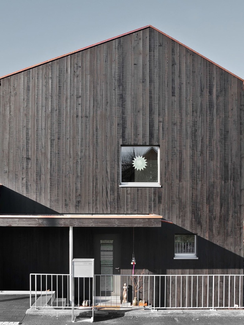 beim umgang mit der landfläche und bei der wahl der materialien hat stets ein möglichst schonender umgang mit der umwelt und den zur verfügung stehenden ressourcen im vordergrund gestanden. so beansprucht das kleine haus mit eigener materialisierung und formensprache keine parzelle für sich, sondern steht als „stöckli“ angebaut an eine alte garage im garten eines bestehenden wohnhauses. das einfache, klare volumen wird nach oben durch ein flaches, asymmetrisches satteldach abgeschlossen.