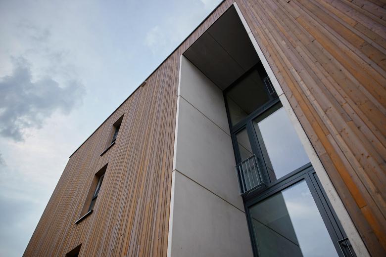 Die Baukörper haben keine Rückseite, sondern haben eine offene gleichwertige Gestaltung nach allen vier Seiten. Bei der Fassade handelt es sich um einer vorvergraute Holzfassade. Die Dächer verfügen über eine extensive Begrünung und Photovoltaik anlagen. Die zweiseitigen "Über-Eck-Wohungen“ mit weiten diagonalen Blicken, sowie Sonne morgens und abends und Sonnenbalkone über Eck bieten besondere Wohnqualitäten.