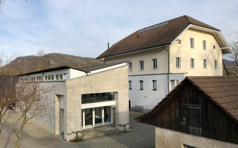 Ein für Wohnzwecke umgebautes Mühlegebäude und ein neu erstelltes Ateliergebäude bilden zusammen mit bestehenden Nebenbauten einen neuen Hof.