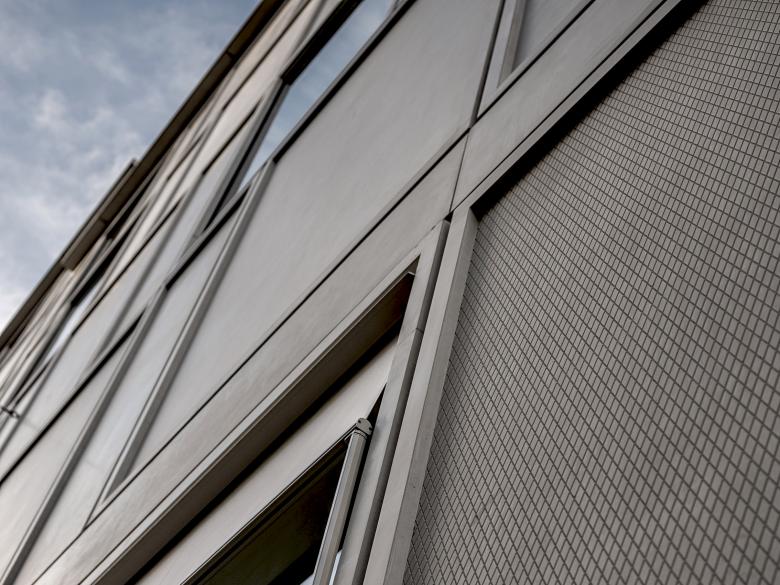 Der architektonische Ausdruck folgt einem einheitlichen Gestaltungsprinzip, dass sich interpretativ an der Thematik eines Setzkastens anlehnt, und in einem übergeordneten Muster im Fassadenraster resultiert. Der bestehende Rohbaukörper wird allseitig mit einer neuen "Haut" überzogen, die in geschlossene und transparente Elemente gegliedert ist.