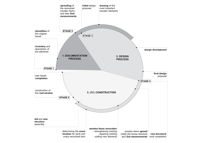 Here the logic of new and old coming together was reflected in the process by which they were made. Old elements needed conversations, placements, and at most, hand drawings. Their unique form and dissimilarities rendered digital drawings complicated and unnecessary, while the new elements, inserted alongside old in the structure, were designed, drawn and executed according to a more typical practice of construction drawings and site checks. These parallel processes resulted in an intensely site driven design, which evolved as much during its process of construction as during its so-called design phase.