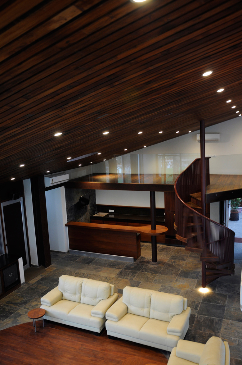 This structure adds a new lounge and service area to a residential campus by transforming the space behind the existing house into an active street that engages both old and new structures, formed by a series of waterbodies that move along a glass facade and end in a bridge that lightly connects existing to new.