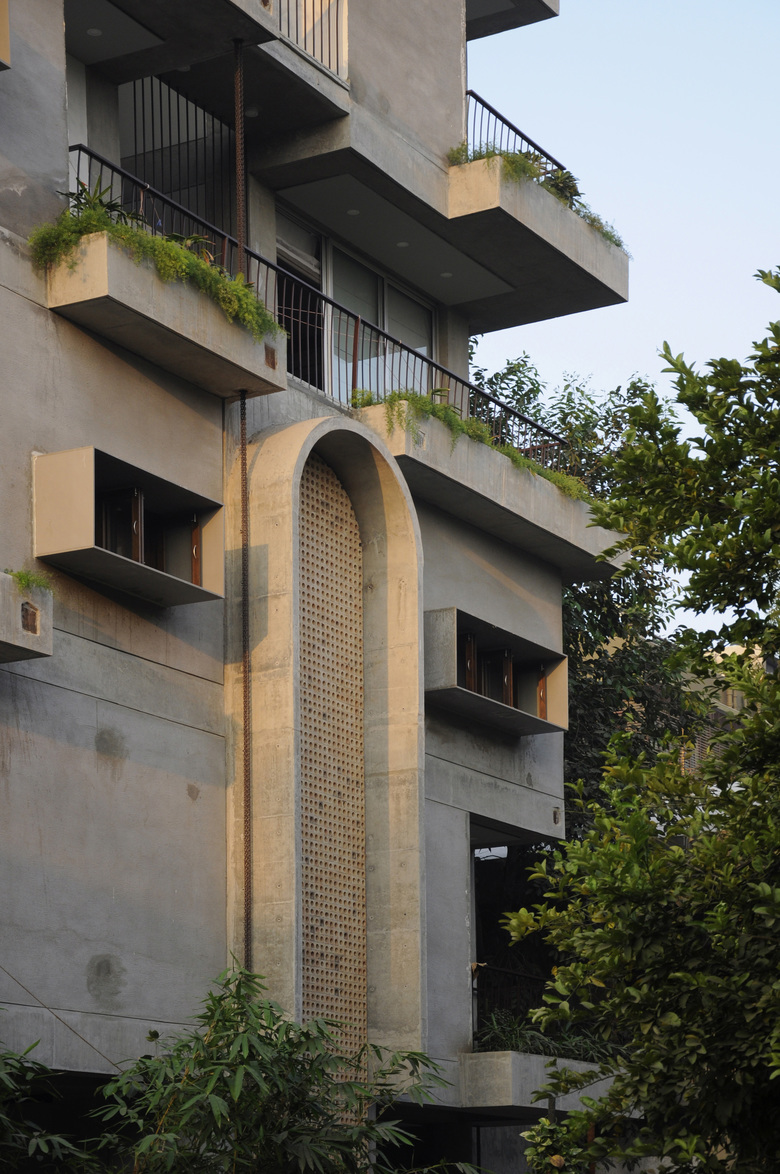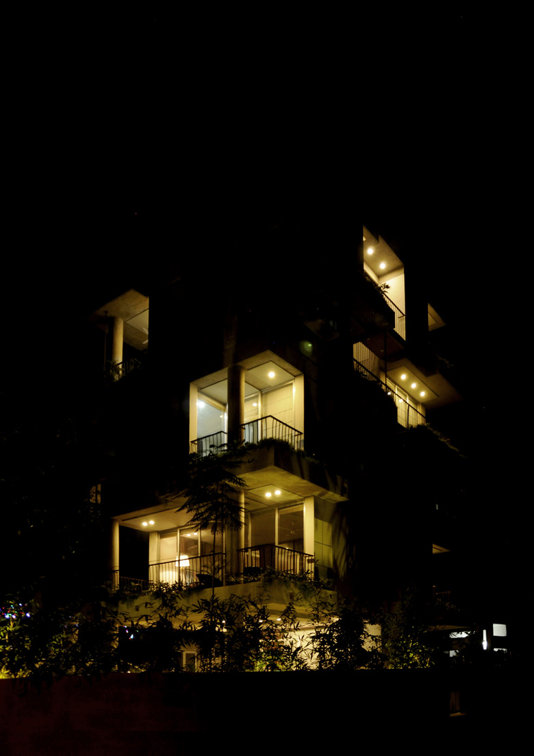 The house in the landscape was recreated from the pieces of a 300 year old haveli. In this structure we merge new and old systems of assembly, combining 18 inch brick walls in concrete frame with gutai lime plaster and restored tel paani finished teakwood elements. The basic form follows the original courtyard layout, flanked by bedroom, kitchen and mezzanine, while the wrapping terrace and sunken entry extend into the spaces outside, to transform the original row house layout into a part of the landscape.