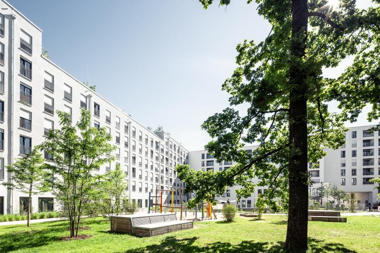 Das Gebäude reagiert typologisch durch die Grundrissorganisation auf den Verkehrslärm und den Gewerbelärm in der Umgebung und orientiert die Wohnungen zu den ruhigen Außenbereichen im Innenhof und an den öffentlichen Grünflächen. Durch eine Gliederung der Baukörper und unterschiedlicher Fassadentypologien wird eine Maßstäblichkeit des Baukörpers geschaffen. Eine nachhaltige und langlebige Baukonstruktion wird mit einem massiven Mauerwerk bei einem achtgeschossigen Gebäude erreicht. Die Vorgaben des Wärmeschutzes werden um 25 % unterschritten.