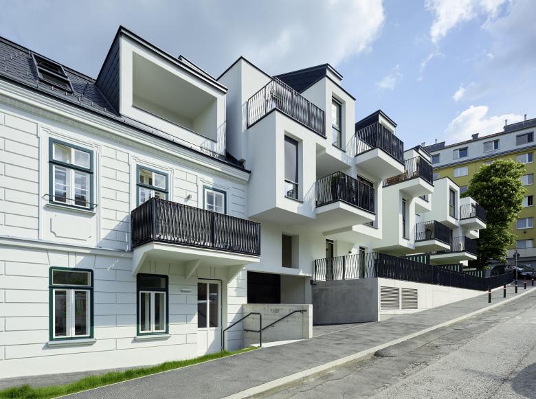 The appeal of the former hotel and tavern in Lilienberggasse lies in its distinctive Biedermeier facade typical for the borough. BEHF Architects has carefully restored the facade, keeping visible the traces from considerable interventions from the 1960s.