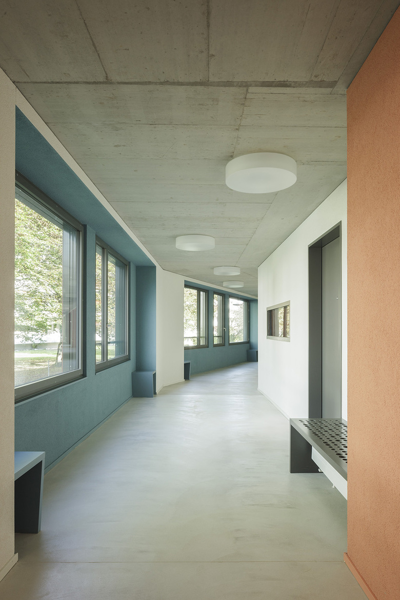 Die Architektur vermittelt zwischen den unterschiedlichen Bedürfnissen der zukünftigen Bewohner. Eine klare Aufteilung in öffentliche und private Bereiche garantiert Privatheit und Rückzugsmöglichkeiten, während gleichzeitig Begegnungen und soziale Durchmischung gefördert werden. Im Erdgeschoss werden Service-Nutzungen wie Spitex und Gemeinschaftsräume angeboten und gleichzeitig die vertikalen Erschliessungen der oberen Geschosse attraktiv adressiert. Die vielfältigen altersgerechten Wohnungen in den Obergeschossen werden über eine natürlich belichtete kommunikative Multifunktionszone mit hoher Aufenthaltsqualität erschlossen und durch einen kompakten Infrastrukturkern bedient. Die Bebauung erfüllt trotz des beschränkten Kostenrahmens die hohen ökologischen und energetischen Anforderungen des Minergie-ECO Labels.