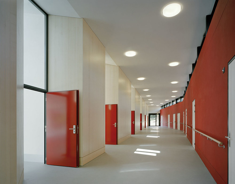 Die attraktive, barrierefreie Erschliessung und eine einfache Organisation ermöglichen eine sehr gute Orientierung und Zirkulation. Es werden differenzierte Aussenräume wie eine grosszügige Terrasse vor der Aula und ein kleiner Innenhof angeboten.