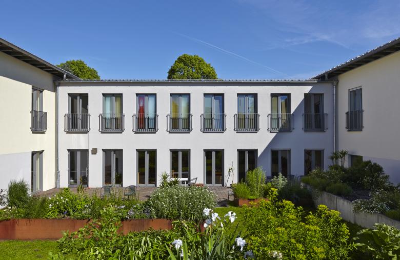 Als Ersatzneubau wurden entlang der Klostermauer ein neuer Klosterladen mit Gärtnerei und Buchhandlung sowie an dem neuen Kirchplatz ein Gästehaus errichtet. Das Gästehaus weist die Zimmer,eine Bibliothek und einen Stillen Bereich im Obergeschoss, die dazugehörigen Gemeinschaftsräume und die Küche im Erdgeschoss in zwei Baukörpern mit einem dazwischen liegenden Gemeinschaftstrakt aus. Farbige Akzente, die Glas- und Außenanlagengestaltung unterstreichen die besondere Atmosphäre des Hauses.