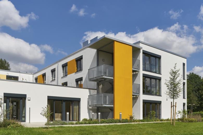 Nahe beim Gesundheitscampus an der Rintelner Straße finden in dem dreistöckigen Neubau nun 72 Bewohner, die in vier Wohngruppen zu je 18 Bewohner aufgeteilt sind, ein neues Zuhause. Zusätzlich gibt es für 12 langzeitbeatmete Bewohner eine separate Wohngruppe. Bei der optischen und räumlichen Gestaltung der Pflegeeinrichtung wurden speziell die Bedürfnisse der älteren und dementen Menschen berücksichtigt.