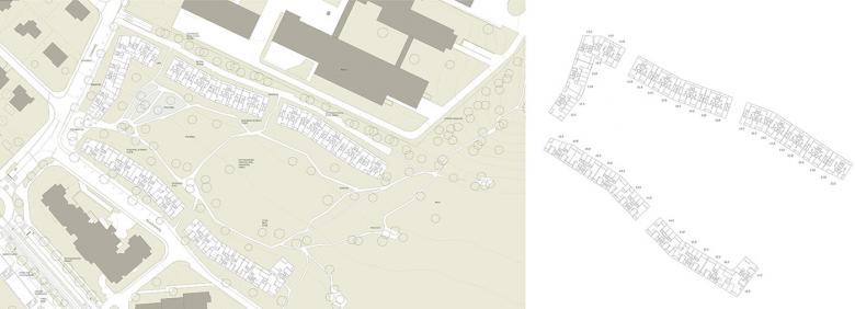 Das Baudenkmal Balsigergut mit seinen alten Bäumen wird gegen die verstädternde Umgebung hin eingefasst mit einer abknickenden Zeile aus Wohnungen. Nordöstlich davon, am Nesslerenweg, zieht die nach Südwesten hin geöffnete Grossform der neuen Wohnungsbauten die Weite der Landschaft als Parkraum bis zum bestehenden EFH-Gebiet Lindenweg im Norden heran.