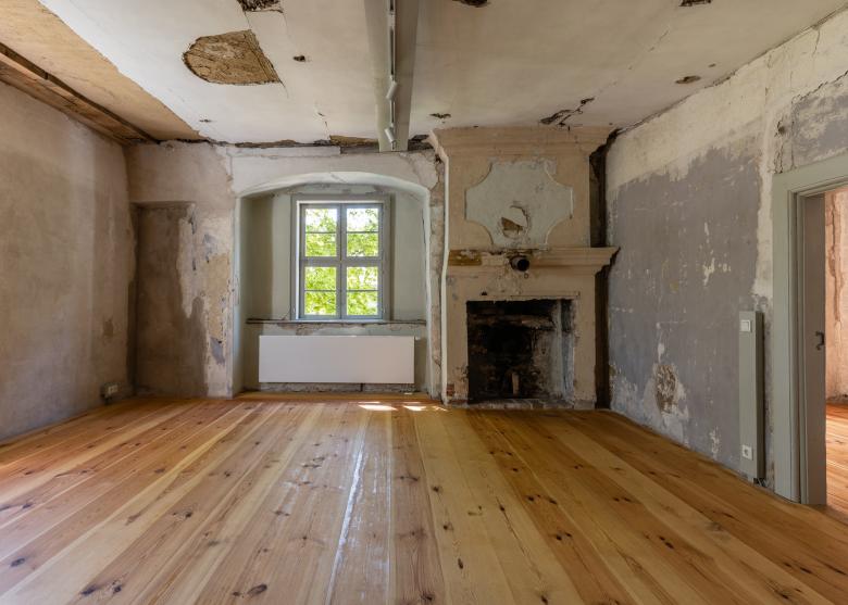 Das denkmalpflegerische Konzept sah für die Instandsetzung neben dem größtmöglichen Erhalt der Substanz auch eine weitgehend gleichberechtigte Behandlung aller Bauzeiten vor, ohne eine bestimmte Epoche rekonstruieren zu wollen. Im Resultat lassen sich in Innenräumen an Wänden und Decken viele Zeitschichten der wechselvollen Historie des Hauses ablesen, so sind etwa die bauzeitliche Schwarze Küche und der nebenliegende Saal durch eine vorgefundene Wandöffnung verbunden, die als Projektorfenster des im 20. Jahrhundert zeitweise eingerichteten Kino-Saals diente.
