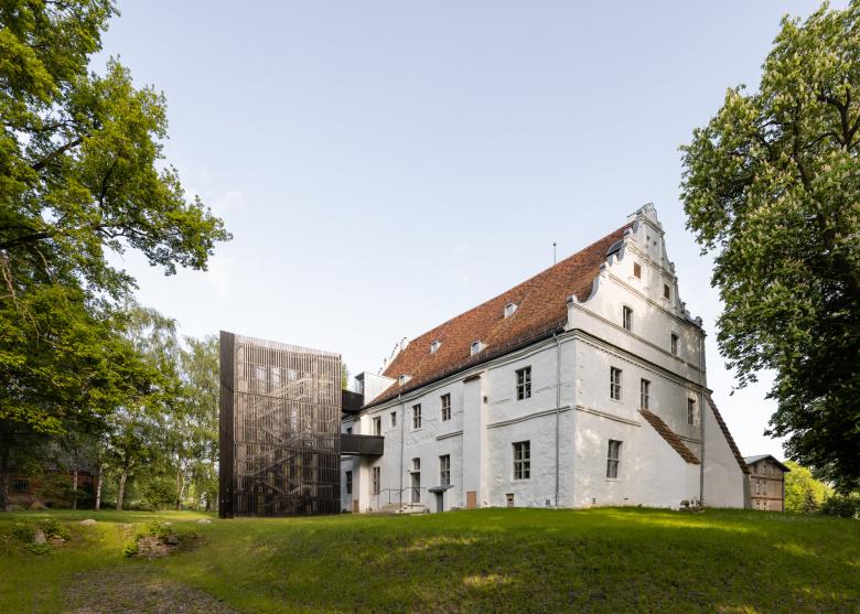 Ab 1575 erbaut, gilt das Bauwerk mit seinen markanten Schmuckgiebeln als eines der wenigen noch erhaltenen Herrenhäuser der Renaissance in Vorpommern, stand seit den 1990er Jahren jedoch leer und war dem Verfall preisgegeben, bis es im Herbst 2020 nach dreijähriger Renovierungsphase wieder eröffnet werden konnte und heute als Museum, Restaurant und Veranstaltungsort genutzt wird.