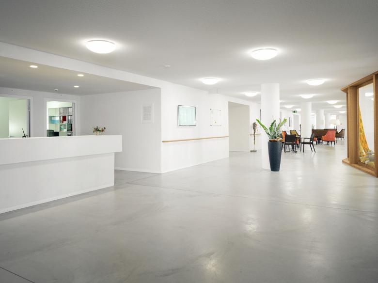 angebotenen Plätze während der Bauzeit um ca. 10% reduziert wurde, stellte die Erstellung unter laufendem Betrieb eine grosse Herausforderung dar. Ein Provisorium im Innenhof wurde so platziert, dass es als Ergänzung der Hauptbaus sowohl während der ersten als auch während der zweiten Etappe dienen konnte.