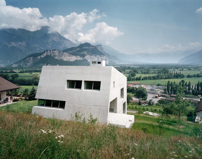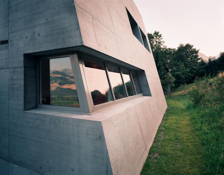 Die Verankerung am Ort sowie Auseinandersetzung mit dem Thema des Bauens am Berg, insbesondere der präzisen Einbettung des Volumens im steilen Terrain, bestimmten den Entwurfsprozess, welcher schliesslich zu dem sowohl im Grundriss als auch im Schnitt trapezförmig verzogenen, prismatischen Baukörper des Einfamilienhauses Gartmann führten.