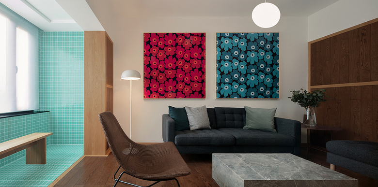 Some signature designs from the Finnish textile label Marimekko are framed as the paintings on the wall. In the movie Kamome Shokudō, it is said that geographically Finland is the closest European country to Japan with only 10 hours’ flight. In terms of aesthetics, Finnish and Japanese are very similar, both simple and warm. The interior design of Free Balcony An starts from a Japanese tearoom and ends on the floral prints from Scandinavia, indicating the extreme richness and similarity of the global culture.