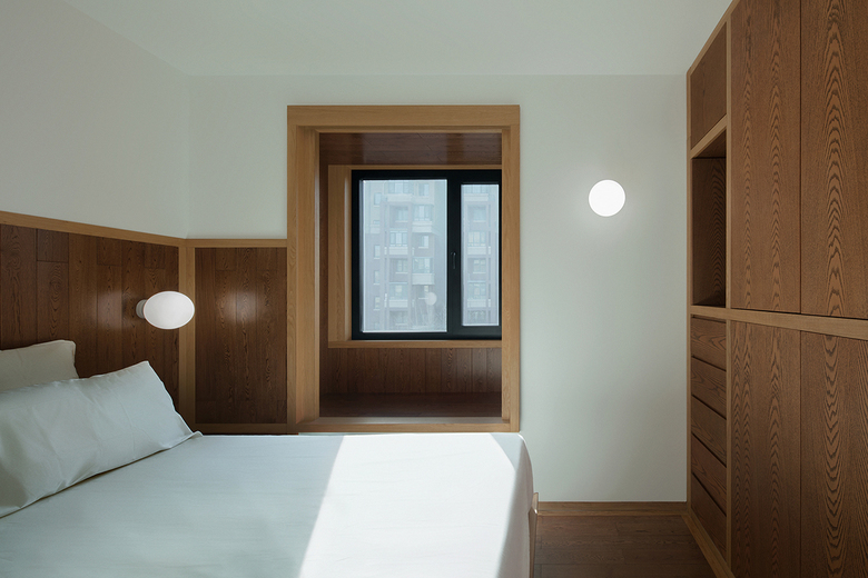 Designed by Drawing Architecture Studio (DAS) for a couple, Free Balcony An is an interior design that transforms a typical two-bedroom apartment at a commercial housing community in Beijing to a home both carrying the spirit of classical space and fulfilling the needs of modern life. The apartment is located in a slab-type building. Its façade is featured with Spanish style decoration. The apartment is north-south transparent with a ceiling height of 2.9m. All the interior walls can be removed. At the north end of the apartment, there is a small balcony given by the developer for free (according to the local regulation, the staggered balconies don’t count within the total area for sale).