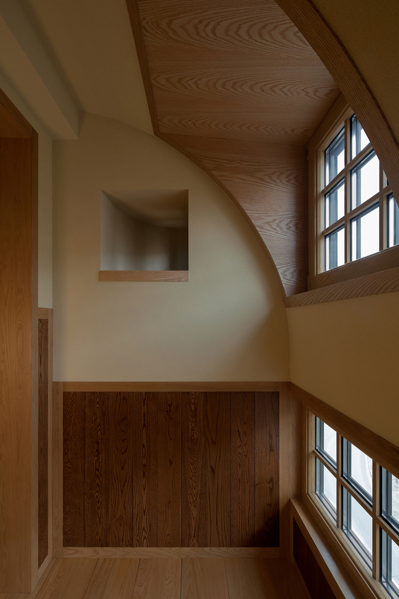 The distribution of materials is neither based on the boundaries of the surfaces (wall and floor) nor on those of the spaces (rooms). Such divisions are too modern. In DAS’ design, the material for the ceiling is extended to the wall and that for the wall is extended to the floor. Thus, classical elements like wainscots and chair rails have appeared. They are not merely decoration. They have combined daily user experience. The accessible places are covered by solid and tactile materials, not only for functional purpose (easy to clean), but also for feel (touchable).