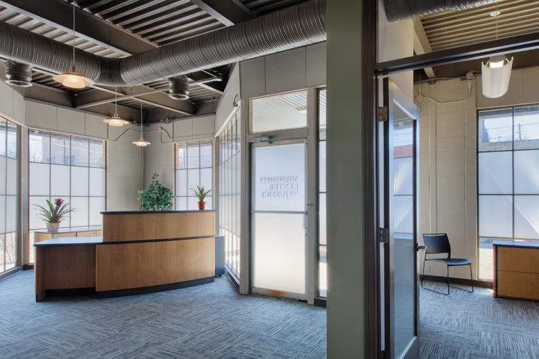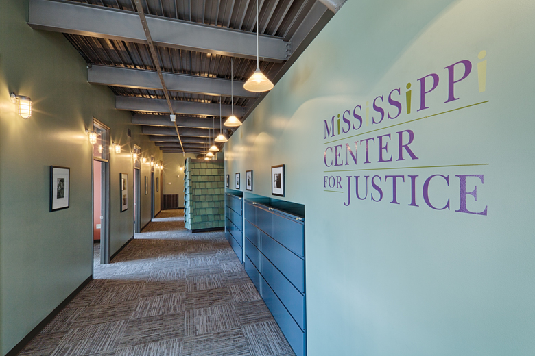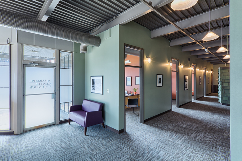 The 6,000 square foot renovation for the Indianola office of Mississippi Center for Justice serves the residents of the Mississippi Delta with legal counsel. These residents often face obstacles to legal services and representation and are often exploited. The economical project is ambitious in design with a goal to materialize the hopes of and respect for those in need of services by providing storefront access to attorneys and support with privacy and dignity.
