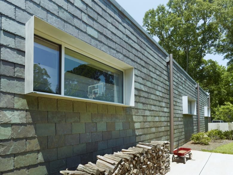A three-bedroom single family home with open living/dining space and detached screen porch and pool. The L-shape house plan consists of a public wing designed like a courtyard sitting between the street and the private rear yard, and a more private bedroom wing along the south side of the property. An inner green rear yard is an extension of the living space connected by a full wall of curtainwall. The design comfortably accommodates daily living patterns and is durable and ecologically mature. Direct and indirect light color and characterize interior spaces throughout the day. The sun is directly harnessed to produce energy and heated water. The material pallet builds space for experiences through expanded contrasts; between rough to smooth, hard and soft, cool and warm.