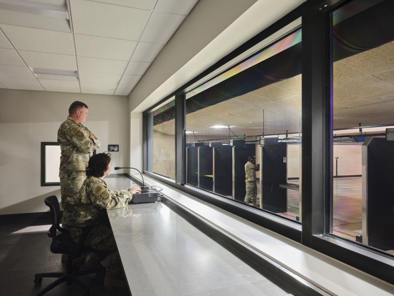 Duvall Decker was commissioned by the Mississippi Air National Guard, 172d Airlift Wing, at the Jackson International Airport, Jackson, Mississippi to design a new Small Arms Training Facility. The 13,557-square-foot facility includes 14 lanes and classroom training spaces as well as other control and support spaces.
