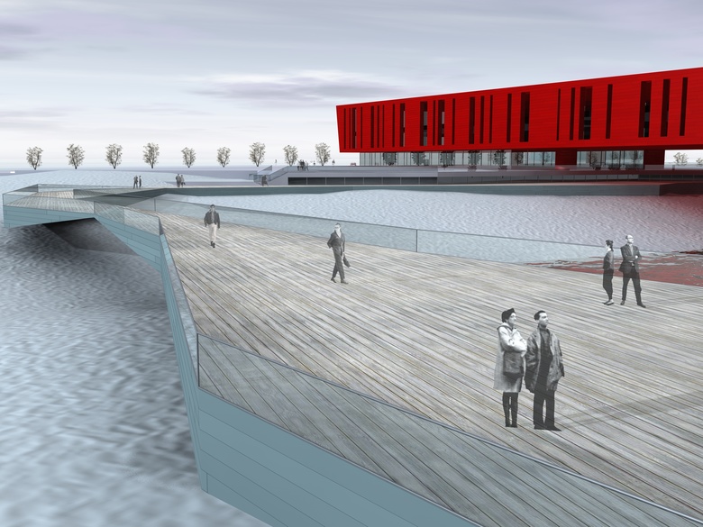 The project has been designed for an international competition for the new Estonian National Museum in Tartu. The project proposal is to consider  the building as a landmark: the museum develops longitudinally with a simple and clean volume, consisting of a long cuboid crushed in the middle to increase the slenderness of prospects.