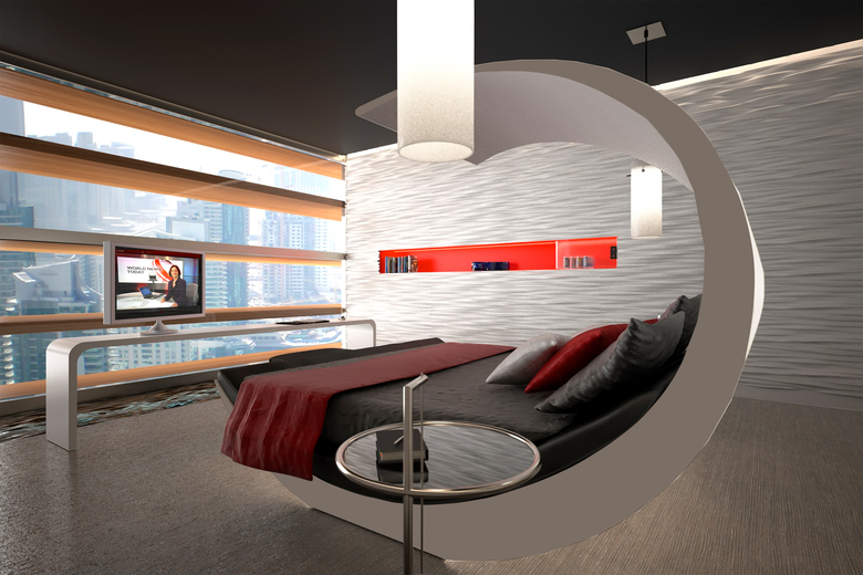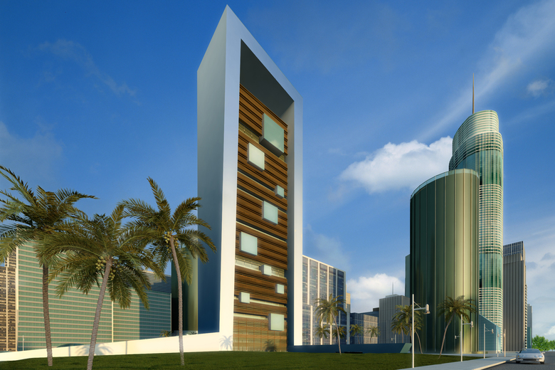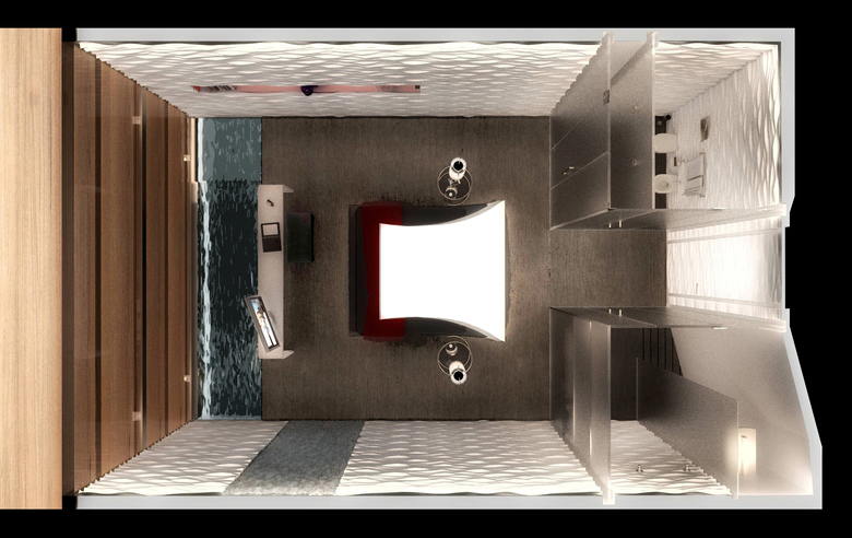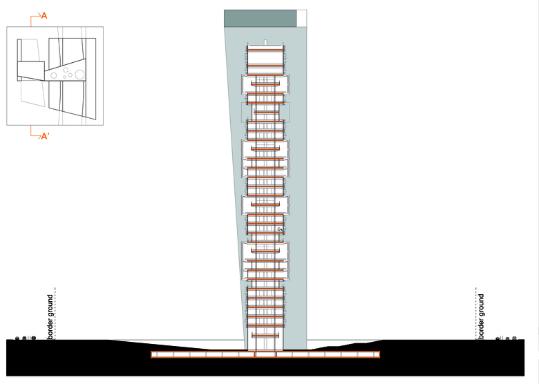 IT Tower is a multifunctional building, with prevailing hotel surface, whose design is entirely made in Italy. The tower interacts with atmospheric conditions using renewable energy and interior natural ventilation. Energy consumption is considerably reduced due to three factors: the irregular ribbon volume that envelops and protects the tower from sun lighting, the double skin shell and the internal spatial distribution. IT Tower design shows externally its internal functional distribution and reveals itself as a stratification of overlapping elements: - the most articulated element is the dynamic perimeter ribbon: it has a structural function and includes vertical connections and technical spaces. At ground level, the ribbon creates a volume, then it grows up to the top of the tower where it becomes the roof, than it goes down on the opposite side, ending as platform; - the suspended volumes have their horizontal floors hanging on two long deep beams. All the shelves have double skin protection with variable section and axle spacing brise-soleils; - the sticking-out glass boxes, simple parallelepipeds fitted between volumes, are dedicated to special uses. In every hotel room, the entrance's axis divides the bathroom in two glass boxes, one more private, hidden by the wardrobe volume accessible from the room, the other one with sink and shower. The bed occupies the middle of the space and faces the big facade window where there is a bathtub that allows also the heat dissipation due to high external sun-lighting. The suites, inside sticking-out glass boxes, have minimal furniture and the internal space is divided only by bathroom volume or by translucent sheets. Engineering design aims to integrate lighting sources and architectural volumes.