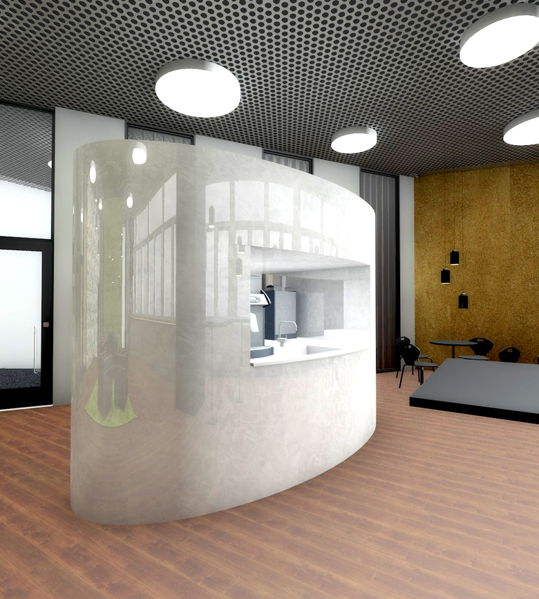 fsp: Mit der Erstellung des Pilotprojektes im Rahmen von Workplace 2020 entstehen im ersten Obergeschoss des Gebäudes 1906 zukunftsweisende und moderne Arbeitsplätze, entsprechend den neuesten Erkenntnissen für kreative Arbeitswelten. Der Open Space der Büroflächen wird mit Focusboxen und Bereiche für Informal Meetings im Cosy Style zoniert. Die Trennwände zum Korridor sind je nach Nutzung mehr oder weniger transparent und der Break Room bietet differente Zonen zum Relaxen und Arbeiten.