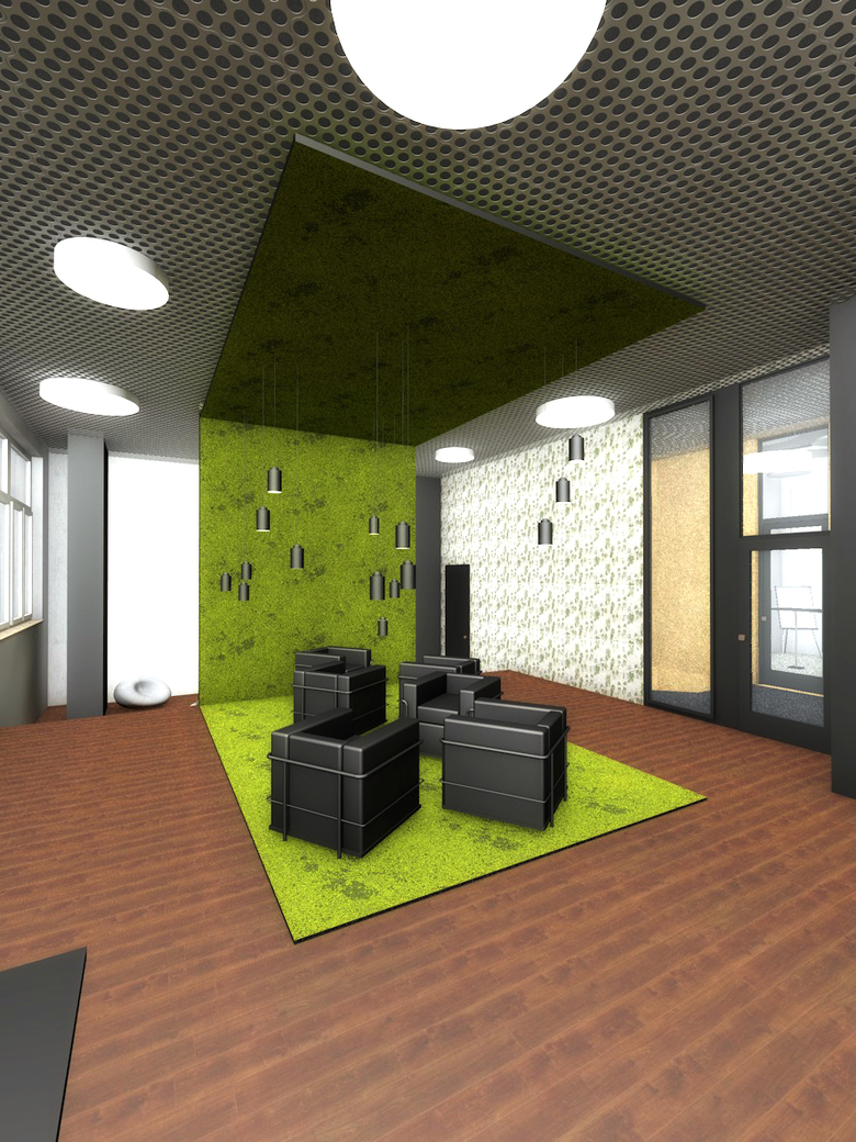 Problemstellung: Die bestehenden Büros sind ohne Zonierung durchgerastert, es fehlen inspirierende Raumbezüge und Raumqualitäten welche einerseits die Kommunikation unterstützen und andererseits wiederum Rückzugsmöglichkeiten für konzentriertes Arbeiten bieten. Die Pausenbereiche sind wenig einladend, sie bieten kaum Gelegenheit für informelle Kontakte und kreativen Gedankenaustausch.