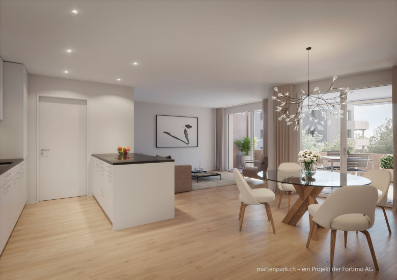 Problemstellung: Durch den rechtskräftigen Gestaltungsplan ist die Setzung der Gebäude durch das Richtkonzept «Findling» gegeben. Um das Ausnützungspotential für die Bauherrschaft auszuschöpfen aber auch die Gebäudelänge nicht zu überschreiten, kommen tiefe, polygonale Baukörper zum Einsatz. Eine Anpassung des Gestaltungsplans entlang der Strasse ermöglichte eine bessere Ortsbauliche Setzung der Gebäude. Sie bilden das neue Dorfzentrum.