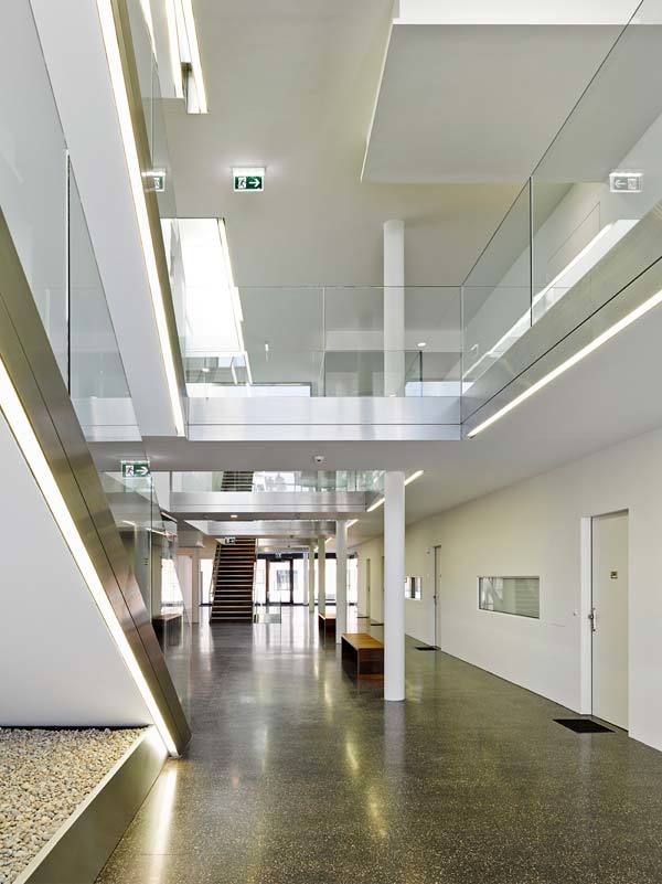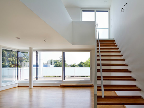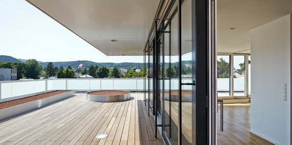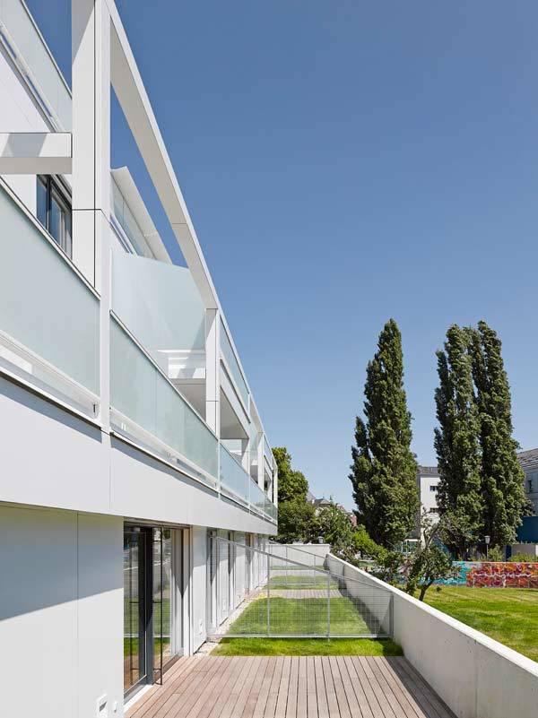 Das statische Konzept erlaubt eine offene Grundstruktur des Gebäudes und bietet dadurch eine hohe Grundrissflexibilität. Die markante vertikale Gliederung der Erschließungszone ist Resultat der Gebäudestaffelung und schafft einen erlebnisreichen Innenraum. Ein System von Trägern und Stützen wird in ein klares Achssystem eingefügt. In diese Grundstruktur können unterschiedlichste Wohneinheiten in flexibler Kombination eingefügt werden, welche leicht an geänderte Nutzungswünsche angepasst und nachhaltig auf gesellschaftliche Änderungen reagieren können. Die terrassierte Anordnung der Gärten erinnert an „hängende Gärten“ und schafft ein unverwechselbares Ambiente.