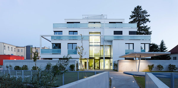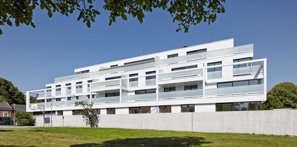 Die architektonische Haltung des Projektes ist den Prinzipien der klassischen Moderne verpflichtet. Die hochwertige Oberfläche der hinterlüfteten Fassaden erzeugt in Kombination mit den intensiv begrünten Terrassen ein unverwechselbares Erscheinungsbild und erweckt historische Assoziationen.