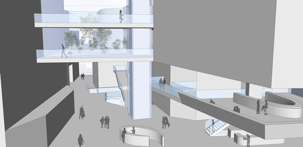 Die Positionierung des Hauses der Musik ermöglicht ein „Umspülen“ des Gebäudes durch öffentliche Wege und eine aufgewertete fußläufige Verbindung der SOWI mit der Universitätsstraße.