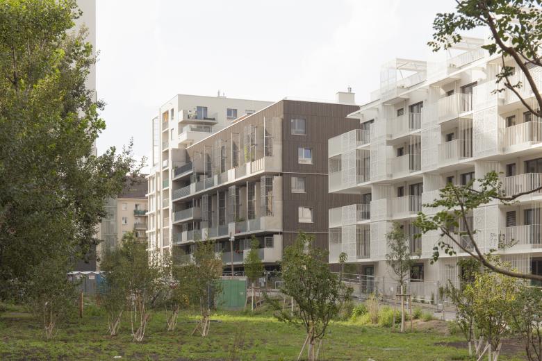 Die Wohngebäude sind in beinahe allen Geschossen, kombiniert mit Dachgärten, Begrünungen und Freiräumen, miteinander verbunden.