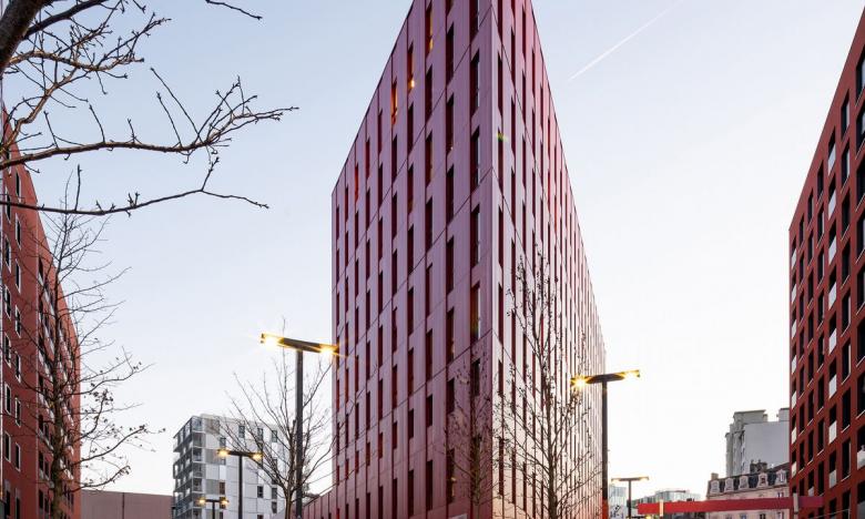 Die Architekten Emmanuel Combarel und Dominique Marrec (ECDM) entwarfen und realisierten die Fassade aus rotem Aluminiumblech. Inspiriert haben sie dabei die in den Giebel des Bahnhofs eingelassenen Backsteine.