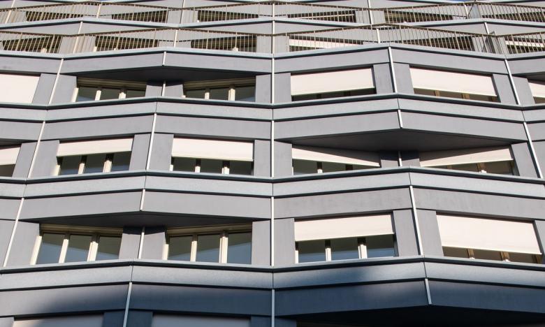 Für den Sonnenschutz wurden die Fassadenmarkisen Solozip II Intro gewählt, welche zur Architektur des Gebäudes passen und einen optimalen Windschutz gewährleisten. Die Fassadenmarkisen sind mit technischen Stoffen in warmen Tönen bespannt, die zum Aluminium und der Fassade passen. Die Möglichkeit, die Führung seitlich einzulassen, war eines der Entscheidungskriterien, ebenso wie eine schraubenlose Deckplatte und ein einfaches Clipsystem.