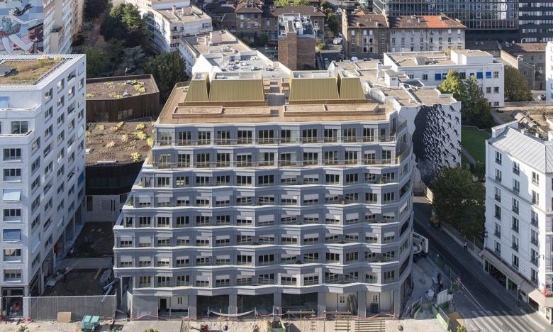 J. A.: Dieses Gebäude wurde 2016 entworfen. So waren wir bereits an einem Klima- und Biodiversitätsplan, den Zertifizierungen NF Habitat HQE und Effinergie + sowie dem Biosource-Label beteiligt. Die Wärme- und Schalldämmung, die wegen der Nähe zur Bahnlinie und zum Boulevard wichtig ist, wurde sorgfältig gehandhabt. Das Gebäude wurde mit einem Energierückgewinnungssystem für Grauwasser ausgestattet. Es wurden umfangreiche Arbeiten für eine horizontale und vertikale Vegetation durchgeführt. Auf dem Dachgarten wurde für die Terrasse und die Pflanzgefässe Holz verwendet. Ausserdem haben wir eine sogenannte Umkehrlüftungsanlage installiert: Die verbrauchte Luft wird mit Abzügen im Keller nach unten abgesaugt. So wird dieser Raum von technischen Elementen befreit. Neben den Treppenhäusern gibt es auf der Dachterrasse auch Räume, in denen die Gärtner ihre Geräte unterbringen können. Der Vermieter hat einen Verein beauftragt, den Bewohnern zu helfen, das Dach zu bewirtschaften.