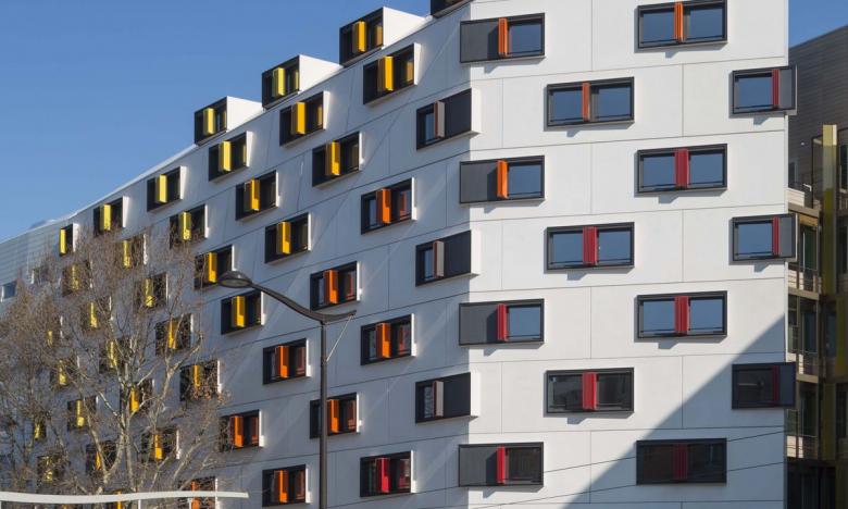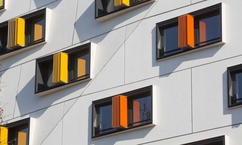 Zu diesem Zweck wurden große Fenster in die Fassade eingebaut. Um das Eindringen des Lichts in jede Wohnung zu fördern wurden 544 Faltscherenläden des Modells S von Griesser eingebaut. Durch die variablen Öffnungswinkel entsteht eine neue Atmosphäre aus Licht- und Schatteneffekten; zudem werden die Anforderungen der französischen Energiesparverordnung RT 2012 erfüllt.