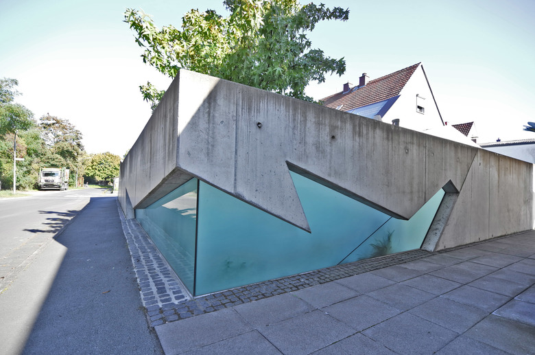 Die Erweiterung an dem bestehenden Wohnhaus der 60-ziger Jahre wurde als „Glaskörper“ konzipiert. Die gestaltete Betoneinfriedung des Grundstücks schirmt den Außenraum vom Lärm der Straße ab. Es entsteht ein Innenhof, der durch die freie Anordnung von Wasser- und Terrassenflächen eine hohe Aufenthaltsqualität besitzt.