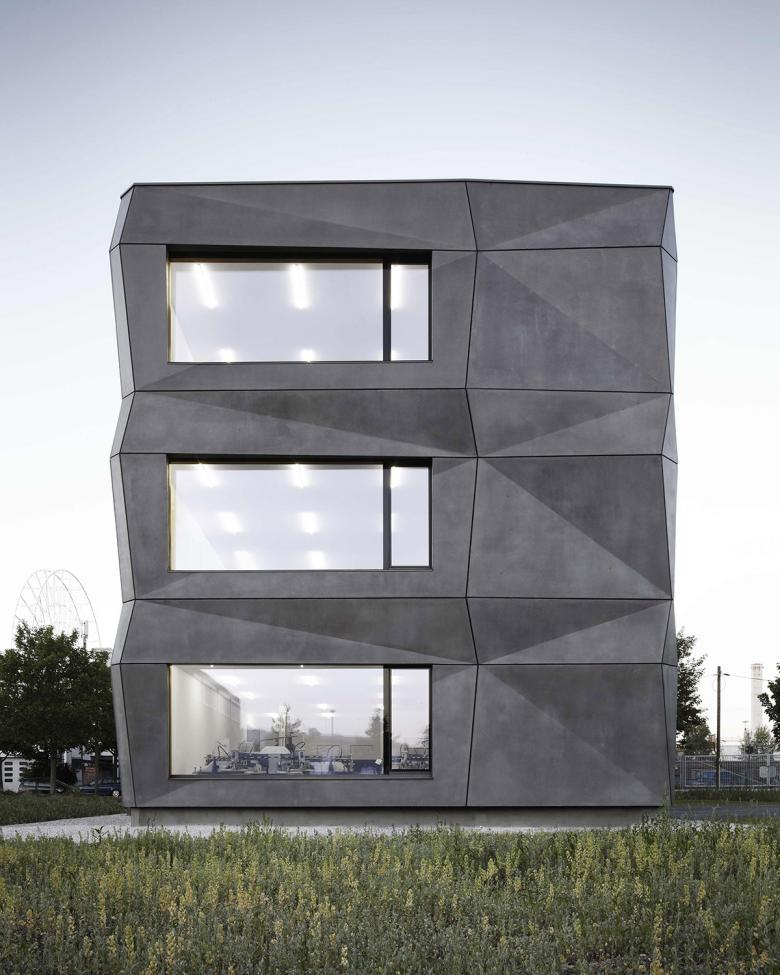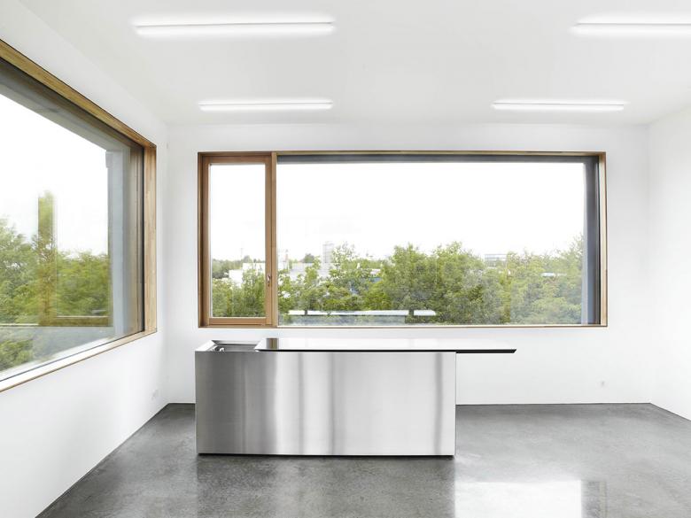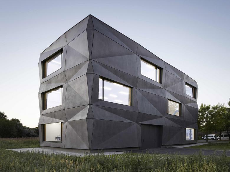 Ein Gewerbebau in München, der mit aussergewöhnlichen Büro- und Produktionsflächen aus dem Bereich Stickerei und Textildruck auf sich aufmerksam macht, ist mit LED Leuchten von Luxsystem ausgestattet worden. Der Baukörper nutzt dabei seine exponierte Lage auf einem Eckgrundstück für den besonderen Auftritt: kraftvoll, selbstbewusst und sehr eigenständig. Der dreigeschossige Quader wird durch ein Gebäuderaster gegliedert, übergroße Fensteröffnungen zeigen sein Innenleben. Die Sandwich-Fassadenmodule mit ihrer Schale aus poliertem, mattgrauem Beton wirken sauber zusammengefügt. Die „gefaltete“ Oberfläche erinnert dabei ungezwungen an etwas Textiles. Durch die großen Fensteröffnungen hat man einen sehr schönen Blick in das innere des Gebäudes. Der Bauherr, die Textilmacher GmbH aus München, entschied sich bei der Beleuchtung für die schlanken Luxsystem LED Lichtlinien der Leuchtenserie SL 20.3. Das Zusammenspiel von natürlichem Licht und Kunstlicht spielte darüber hinaus für das Architekturbüro Tillich aus München eine große Rolle und konnte mit der silbernen Luxsystem Leuchte sehr gut realisiert werden.