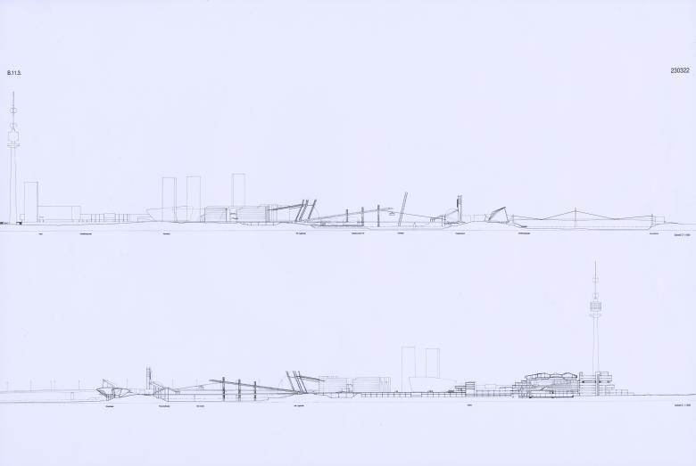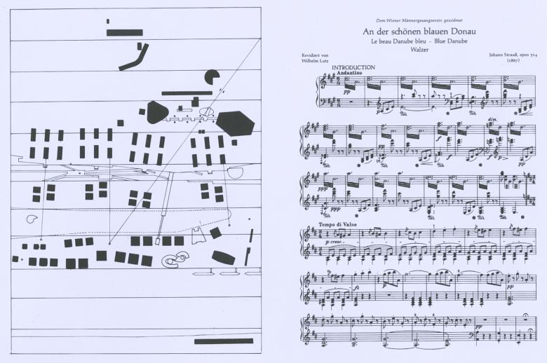 Die Sequenzen orthogonal zur Donau sind von unterschiedlicher Erlebnisqualität, der Plan ähnelt einer Partitur, Rhythmik und Bewegung reflektieren den Tenor der EXPO.