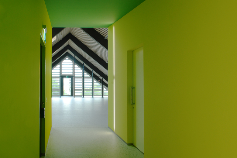 Im Gemeindehaus Hägglingen, welches wir 1996 gebaut hatten, sollte die bestehende Dachraumreserve aktiviert werden. Es war beabsichtigt den Raum für öffentliche Vorträge, Vereinsanlässe wie auch Unterricht zu nutzen. Der Ausbau musste also vielfältige Nutzungsanforderungen aufnehmen können. Entsprechend multifunktional sind Erschliessung, Ausstattung, Belichtung und das Raumangebot inklusive einer Vereinsküche. Als Ort welcher für viele Leute bestimmt ist, fanden wir es angemessen mit etwas Farbe Lebensfreude einzubringen.